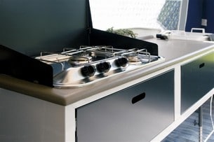 Klicka för större bild Ny design på köketSamtliga Camp-lets modeller har fått en ansiktslyftning utvändigt, så nu har camping-kockarna också något att glädja sig åt. Royal har fått nytt kök med hela två förvaringsskåp, två lådor och glidsäkert underlag i botten som kan tas ut och diskas i diskmaskinen därhemma. Apollo Lux, Concorde och Savanne har också fått dubbla skåp i köket och mycket mer bänkyta. Diskhon är inte längre nedsänkt i bänken utan har placerats i änden av själva kökssektionen, så att man istället kan använda mer än hälften av bänkytan för tillberedning av mat. Resten av bänken huserar en snygg och driftssäker spis i rostfritt stål med tre plattor.- I Holland och England är det trendigt att resa med tältvagn och det finns en tendens till att det håller på att bli det även i Danmark. En Camp-let är nämligen det idealiska fordonet när man vill ha friluftsliv utan att ge avkall på en ordentlig säng och andra bekvämligheter. Utöver det väger den väldigt lite och är därför mer ekonomisk att köra med än till exempel en husvagn, säger Hans Jörn Nissen.