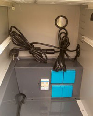 Nu behöver du inte längre bli stående utan ström på campingsemestern. Som ett supplement till Combi Camp- tältvagnen, är det nu möjligt att installera en s.k. el- modul, vilket betyder att tältvagnen får fyra stycken 220/230 Volts invändiga eluttag. Utvändigt sitter det ett CE - campinguttag, som är maken till dem som sitter på husvagnar och husbilar. När det på campingplatsen är ström dragen till tältvagnen, är det således också ström inne i vagnen.