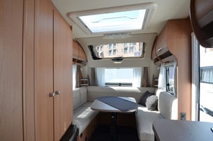 Knaus Sport 540 UE har ett stort panoramafönster ovanför sittgrupperna på framsidan. SportKnaus Sport kommer med två nya planlösningar utöver de femton befintliga. 500 UF och 540 UE har båda ett stort panoramafönster ovanför sittgrupperna på framsidan. Sverigefavoriten Südwind fortsätter även under 2018 med modellvarianterna Silver Selection och den fullfjädrade vintervagnen Scandinavian Selection.