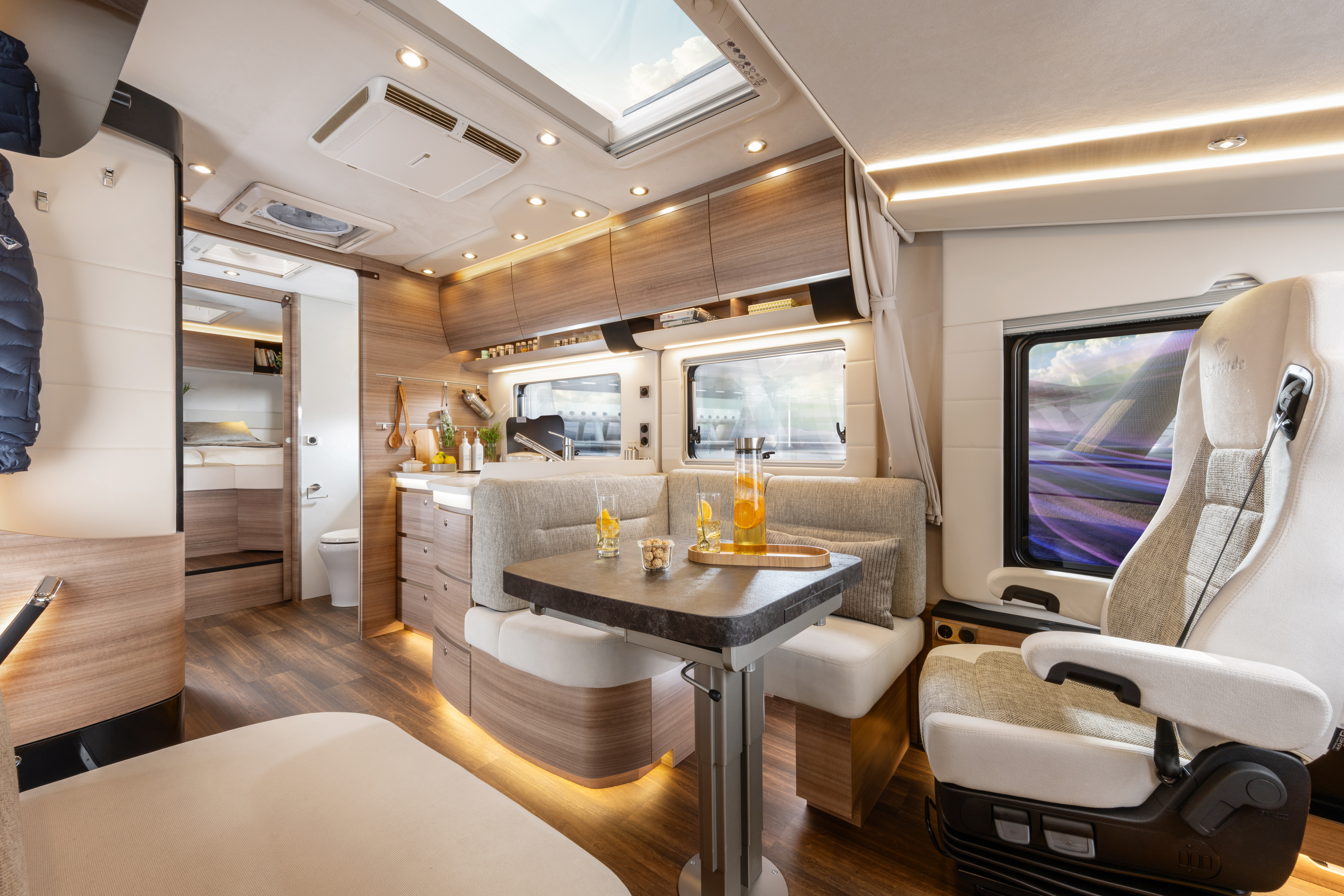 Nya Carver kombinerar premiumkomfort med smart teknik och ny, sportigare design. Invändigt har flera funktioner förbättrats. Köket får bland annat en ny gasolspis och en integrerad avfallslucka som förenklar sophanteringen. Sovkomforten är uppgraderad med tjockare och mer ergonomiska madrasser. För ett behagligt inomhusklimat finns kraftfull luftkonditionering och ny led-belysning skapar en varm och indirekt ljusmiljö längs fönsterpartierna.