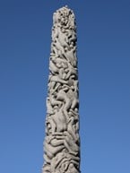 Den 17 meter höga pelaren Monoliten föreställer sammanflätade människofigurer En plats i solenVi släntrar bara runt, samtalar och njuter av livet i denna praktfulla huvudstad.Vi går hela vägen upp till parkens högsta punkt, där Monoliten står.Det är en 17 meter hög granitpelare med människofigurer som är sammanflätade i varandra. Det är också där vi hittar en plats på solsidan, njuter av värmen och mumsar på den medhavda fikan. Det är bara ca 10 grader varmt, men i solen kan vi ta av jackorna och verkligen njuta av att det fortfarande finns lite värme i höstsolen.