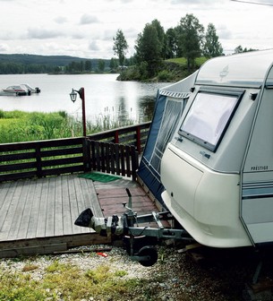 Klicka för större bild På östsidanOm du åker över Kroksundbron och lite söderut så finns det två campingplatser. Den ena är lätt att hitta, nämligen Aaseby. Här finns plats för mellan 150 och 200 husvagnar ända in till vägen mellan Ørje och Rømskog, och även Aaseby Camping ligger vid vattnet. Det är sandstrand, ny toalettbyggnad och nästan bara fastliggare här också. Trofasta kunder som har upptäckt denna pärla och stillheten som råder i denna avkrok, inte särskilt långt ifrån gränsen till Sverige. Några hundra meter längre norrut ligger ytterligare en campingplats vid Jaavall. Den är också ganska stor, men ingen skylt från huvudvägen visar riktningen, så du bör nästan ha lokal kännedom för att hitta. Med tre campingplatser så nära varandra förstår man att området längst norrut i Rødenessjön är mycket tätbefolkad av campare under sommarmånaderna. Här är det de lite större vagnarna som dominerar, inte husbilar som på många andra norska campingplatser.