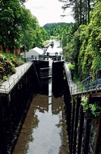 Klicka för större bild Vassdraget var tidigare en viktig färd- och flottningsväg. Flera slussar och kanaler har byggts för att underlätta transporten i vassdraget. I Stensälven mellan Aspern och Femsjön ligger Brekke slussar, Nord-Europas högsta och numera uppdämda slussar vid Krappeto. Längre norrut ligger slussarna vid Strømsfoss och Ørje. Den delen av Haldenvassdraget som var farbar med båt och där man kunde släpa timmer mot Halden är mer känt under namnet Haldenkanalen och konstruerades av Engebret Soot som har fått en minnessten vid slussarna i Ørje. Vassdraget var tidigare en viktig färd- och flottningsväg. Idag är den en viktig turistnäring för Østfold-kommunerna. Den gamla ångbåten Turisten har renoverats och satts in på delar av sträckan. Turisten byggdes vid Nyland Mekaniska verkstad i Kristiania (Oslo) 1887, men låg på sjöbotten mellan 1967 – 1997. Idag går den mellan Strømsfoss och Tistedal. MS Strømsfoss och MS Thor kan du också se som passagerarbåtar på Haldenvassdraget.