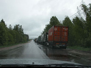 Klicka för större bild Många rykten om vägen till St. PetersburgVägen mellan gränsen och St. Petersburg hade jag före avresan hört väldigt mycket dåligt om. Både att den skulle vara farlig att köra på och att den var i mycket dåligt skick. Det är fler som har avrått oss att köra just denna sträcka. Problemet var bara att det är den enda vägen till staden. Det är inte Europas bästa landsväg men det handlar bara om att köra efter förhållandena och vi såg inget av den kriminalitet som jag hade hört så mycket om. Försök ändå att planera så att ni kör på dagen och inte behöver stanna under vägen.