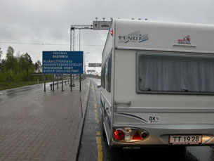 Vi gick upp tidigt eftersom det en lång dag väntar oss. Vi skall ta oss över gränsen till Ryssland och ingen vet hur lång tid det kan ta. Vi är väldigt spända eftersom vi har hört mycket om gränsövergången just i Ryssland. Nu skall vi få vår egen upplevelse. Regnet öser ned så frukosten äter vi i vår husvagn, där det finns plats för oss alla.