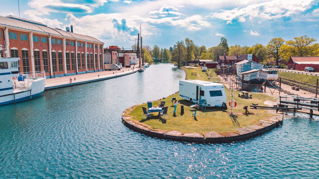 Husvagnssemester och gourmetmat är två begrepp man sällan sätter i samma mening. Men i somras testades just detta vid Göta kanal som ett nytt koncept där campinglivets enkelhet kombinerades med kulinariska ambitioner under det något krystade namnet Off Grid Fine Dining. På ren svenska handlar det alltså om finmiddag i en husvagn och bakom satsningen stod Göta kanal och Forsbergs Fritidscenter som ville visa att husvagnslivet kan rymma mer än grillkorv och engångsbestick. Under juli månad serverades en trerättersmeny på tre särskilt utvalda platser längs kanalen – Bergs slussar, Karlsborg och Borenshult – platser där restaurangbord normalt inte existerar. Gästerna fick sina platser efter att ha vunnit en tävling.