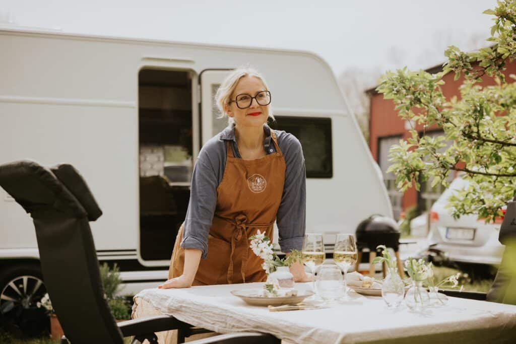 – Jag är ju från Småland och är uppvuxen med husvagnssemester och husvagnsmässa på Elmia. Så det var väldigt roligt att testa finmiddag i en husvagn. Vi hade plats för åtta gäster per kväll, alltså fyra par som inte kände varandra och jag tänkte att det kan bli hur fel som helst. Men tvärtom – det blev superbra och så lyckat!