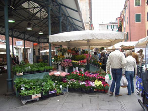 Klicka för större bild Marknad i den gamla stadsdelenDet jag älskar med att resa i de sydeuropeiska länderna är bl.a. marknaderna. Varenda stad med självrespekt har marknad varje dag eller flera gånger i veckan. Dessutom finns det otaliga specialbutiker med något för alla smaker. Italien har ett överflöd att god mat och man kan lugnt lägga bantningskuren åt sidan medan man är på semester här. Allt annat skulle vara synd, därför att det finns så mycket att smaka på och så har man ju semester.
