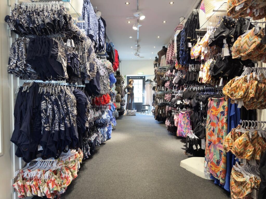 Redan när man tar första klivet in genom dörren möts man av något mer än bara bad- och underkläder. Här finns en varm, lugn och personlig atmosfär. Den lantliga charmen möter färgsprakande badmode, vackra spetsar och noggrant utvalda kvalitetsplagg. Många kunder blir förvånade över butikens storlek. Bakom den idylliska fasaden döljer sig 140 kvadratmeter fyllda av badkläder, underkläder och nattplagg.