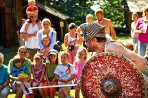 Vid Vikingabyn i Svanberga, strax utanför Norrtälje, kan man uppleva hur man bodde och arbetade på vikingatiden.